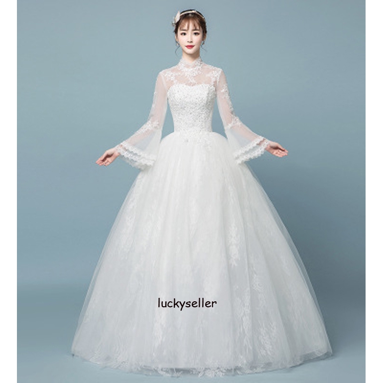 Womens Wedding Korean Bride Long Sleeve Romantic Lace Up Ball Gown