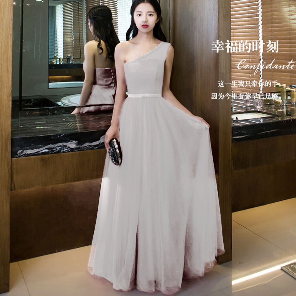 Jual New Korean Bridesmaid Dress Evening Dress Wedding Dress Grey
