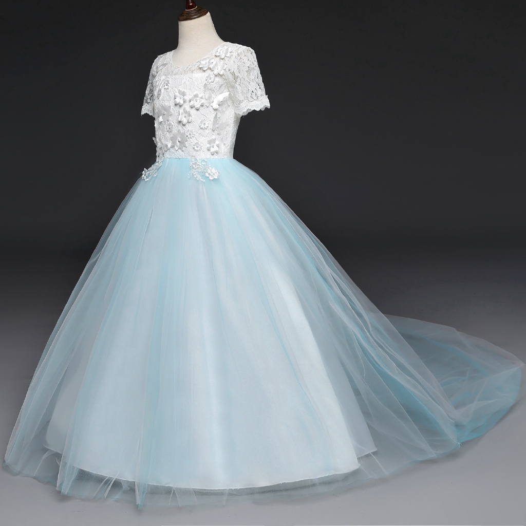 Korean Style Short Sleeve Round Neck Lace Ball Gown