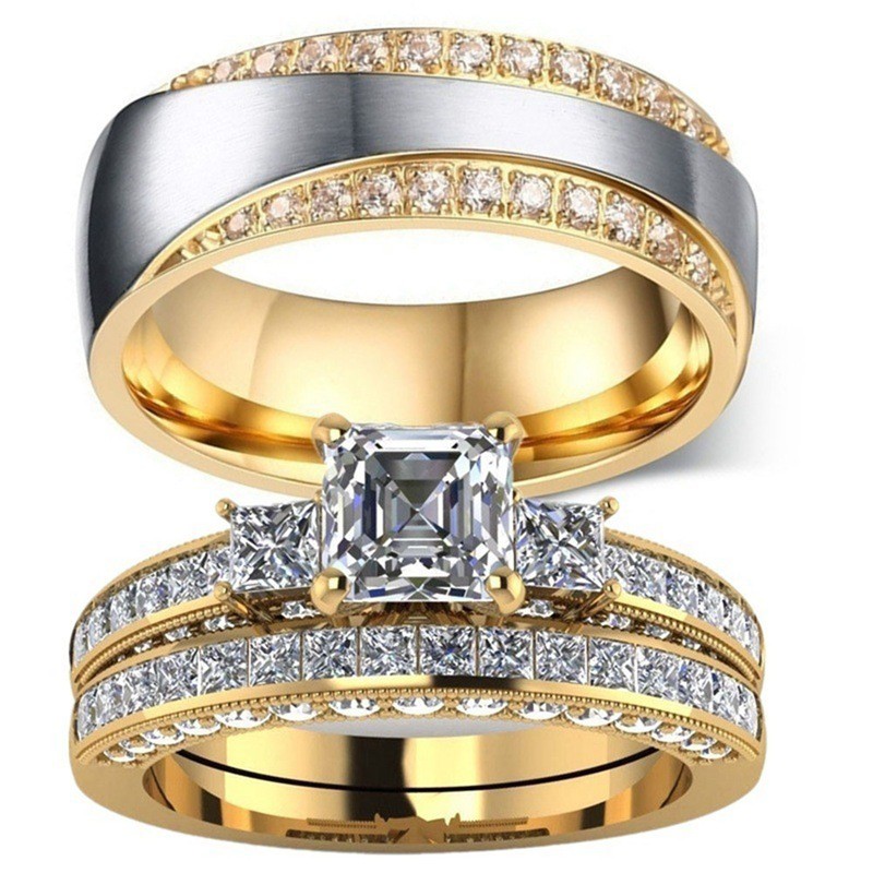 Amazon Com 3pc Two Rings His And Hers Couple Rings Bridal Sets