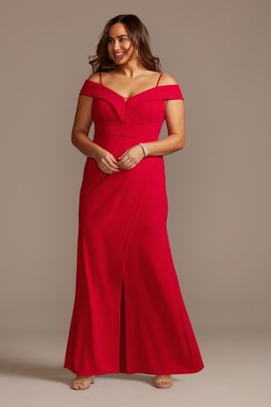 Off Shoulder Fold Seamed Plus Size Gown With Slit David S Bridal