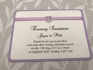 10 Wedding Invites Evening Or Daytime Lilac Ribbon Pearl