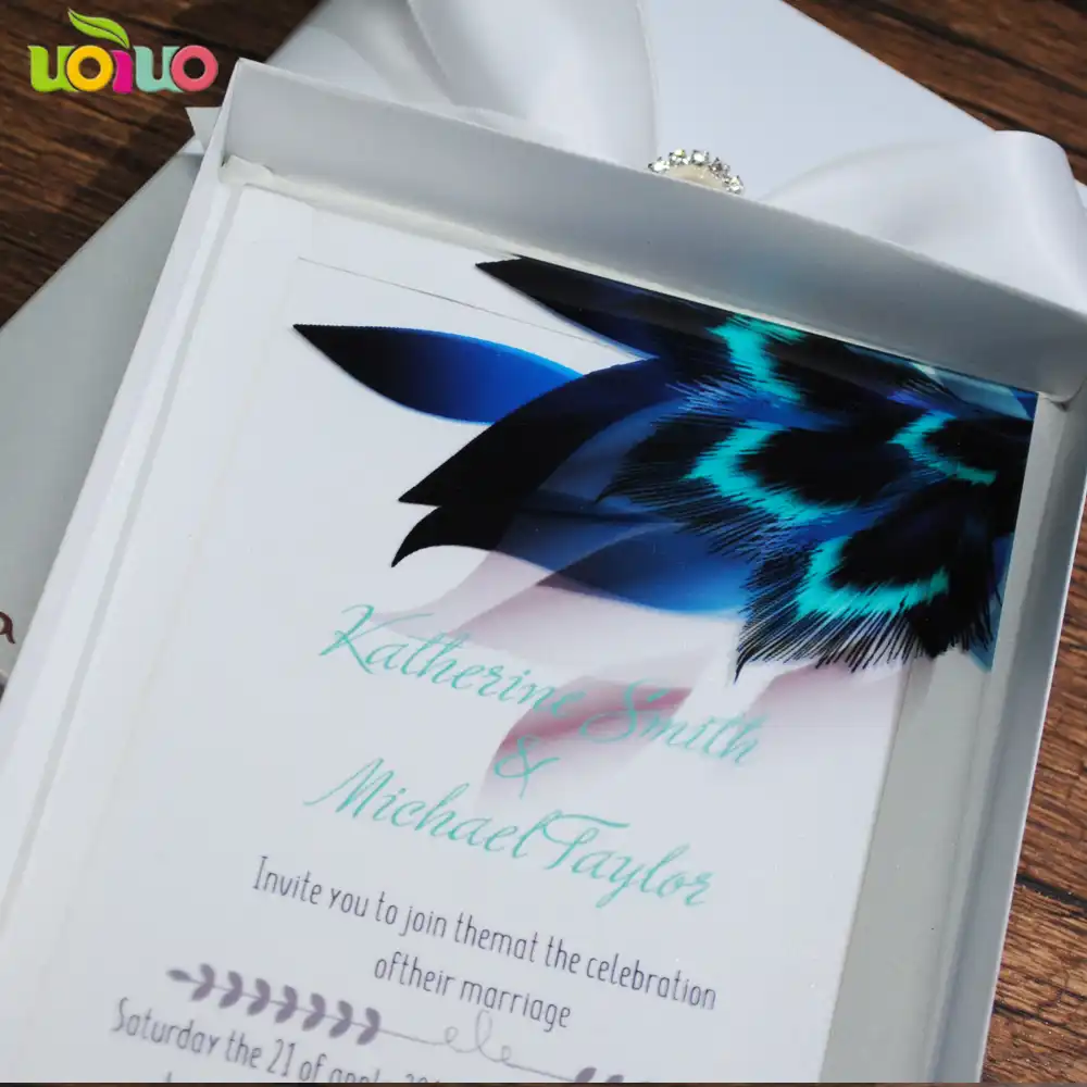 50pcs Elegant Peacock Acrylic Invitation Card Laser Cut Printing