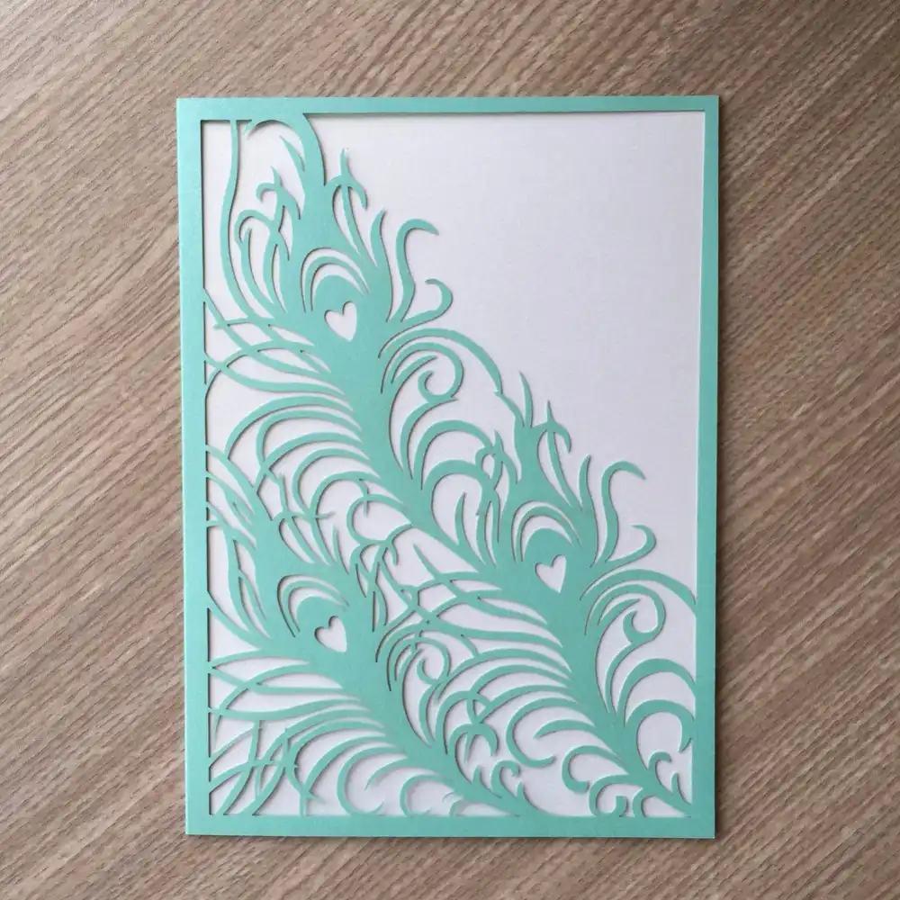 Wedding Invitations Cards Personalized Laser Peacock Design