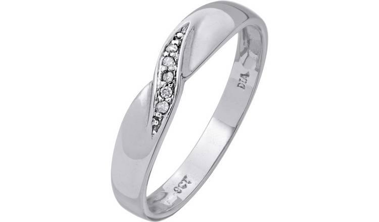 Buy Revere 9ct White Gold Diamond Accent Wedding Ring 3mm N