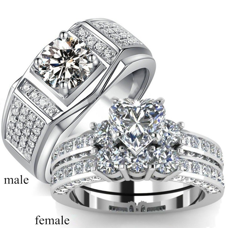 Fancyqube Couple Rings His Hers Heart Shape Three Sonte Zircon
